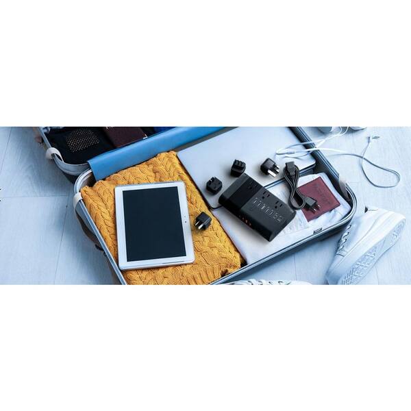 2.9 Amp 3-Outlet 100-220-Volt to 110-Volt Voltage Converter with USB-C and A Travel Adapter Universal Plug, Black