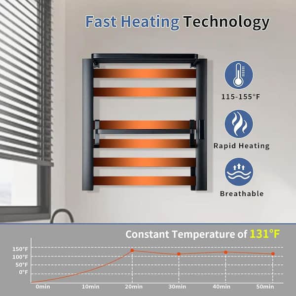2 in 1 Towel Warmer Rack 6 Bars Electric Wall Mounted Heated Towel Drying Rack with Timer Temperature Control