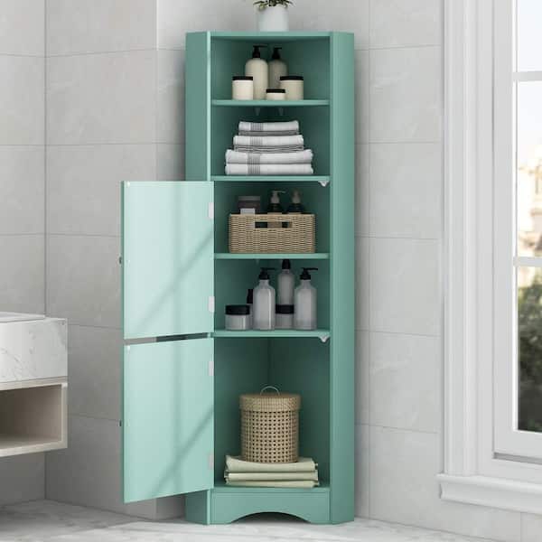 21.16 in. W x 12.8 in. D x 61.02 in. H Ready to Assemble Tall Green Triangle Bath Cabinet with Doors and Shelves