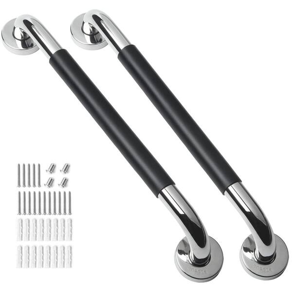 24 in. Stainless Steel Shower Grab Bar with Anti Slip Rubber Grip, Wall Mount Safety Handrail Support in Chrome, 2-Pack