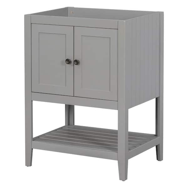 24 in. W x 17.8 in. D x 33 in. H Bath Vanity Cabinet without Top in Gray with Solid Doors and Open Shelf