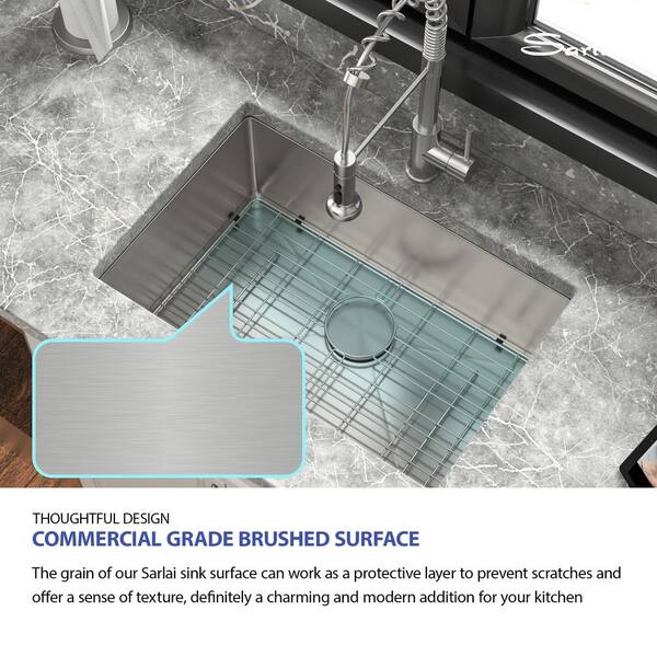 27 in. Single Bowl Undermount 16 Gauge Stainless Steel Kitchen Sink Workstation with Accessories, Brushed Nickel