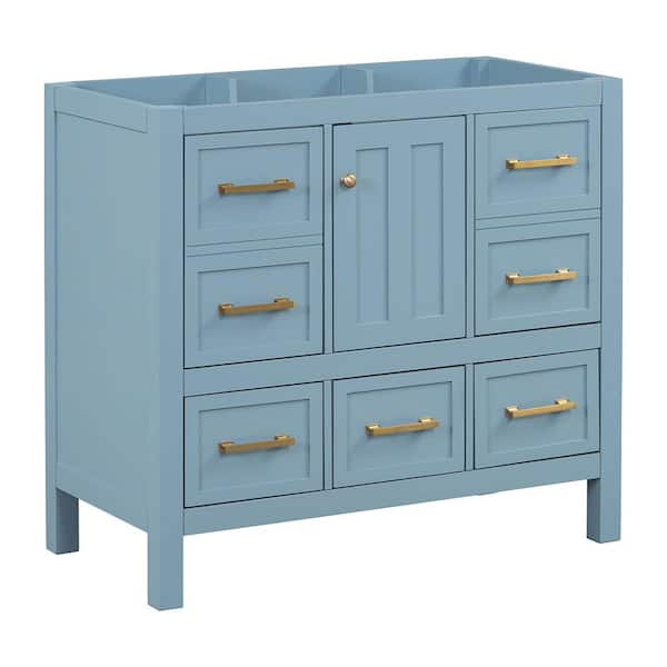 36 in. W x 18 in. D x 33 in. H Bath Vanity Cabinet without Top w/5-Drawers and Soft Closing Doors in Blue, Cabinet Only