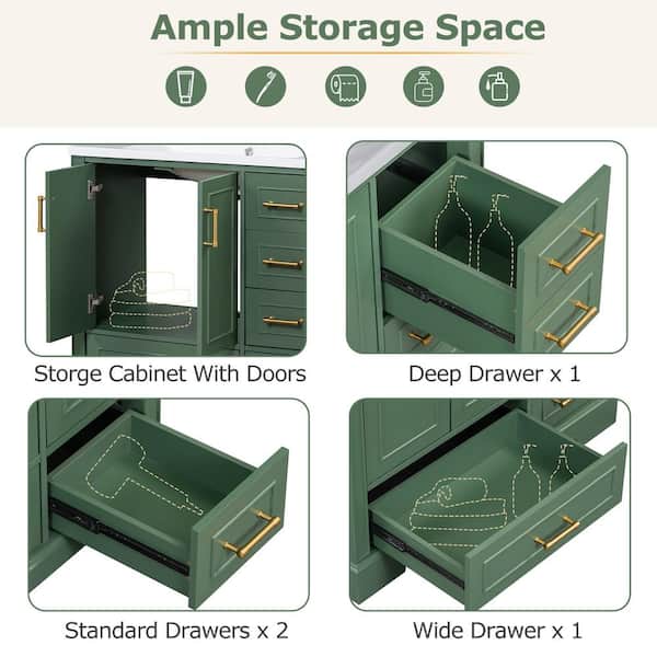 36 in. W x 18 in. D x 34 in. H Freestanding Single Sink Bath Vanity in Green with Resin Top in White