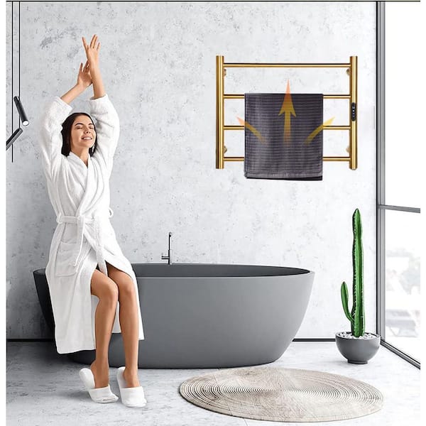 4 Bar Wall Mounted Electric Towel Warmer with Timer and Temperature Control in Brushed Gold Finish