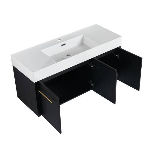 48 in. W. x 18 in. D x 22 in. H Single Sink Floating Bath Vanity in Black Chestnut with White Resin Top