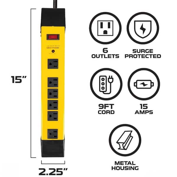 6-Outlet Heavy Duty Surge Protector Power Strip with Built-in Circuit Breaker-Metal Surge Suppressor Black and Yellow