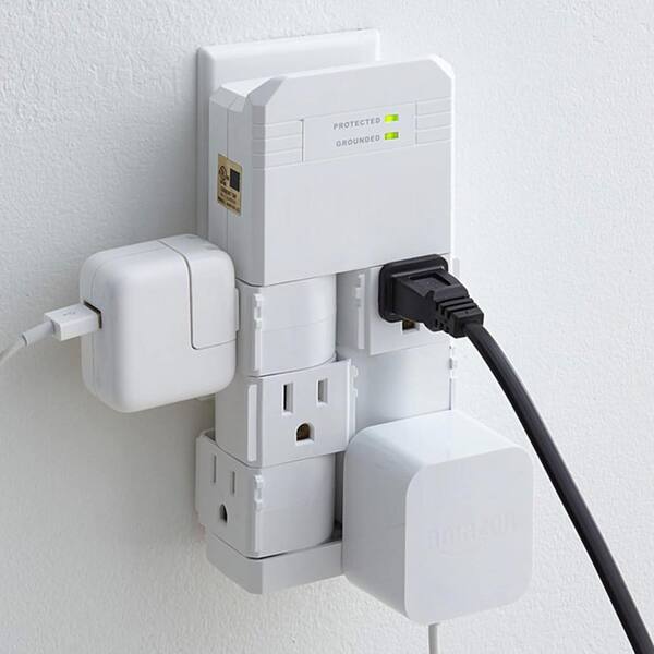 6-Outlet On-Wall Surge Protector with Pivoting Outlets and 1080 Joules of Surge Protection in White