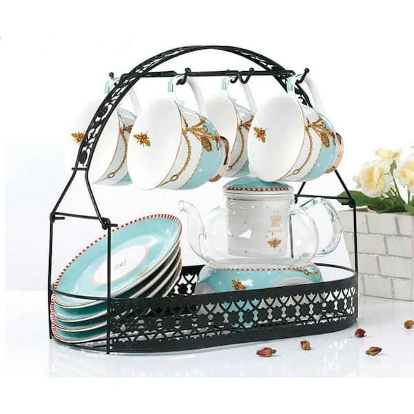 6 hooks Wrought Iron Mug Tree Rack and Dishes Organizer for Counter, Cabinet, Table, Kitchen, Restaurant, Office, Black