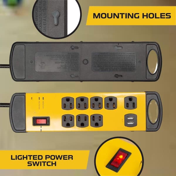 8-Outlet Heavy Duty Surge Protector Power Strip with Built-in Circuit Breaker-Metal Surge Suppressor Black and Yellow