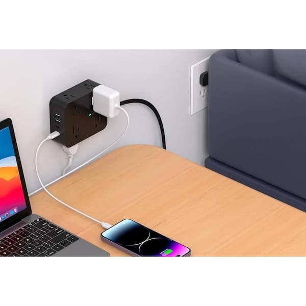 Black 8-Outlet Power Strip Surge Protector with 5 ft. Ultra Thin Flat Plug Cord with 4 USB Ports &1080J