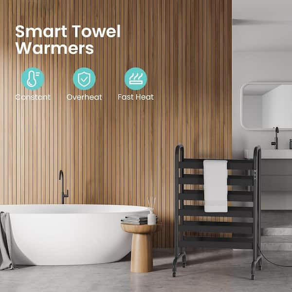Freestanding 8-Bar Heated Towel Rack Smart Electric Warmer with Timer Fast Heating Plug-in Black