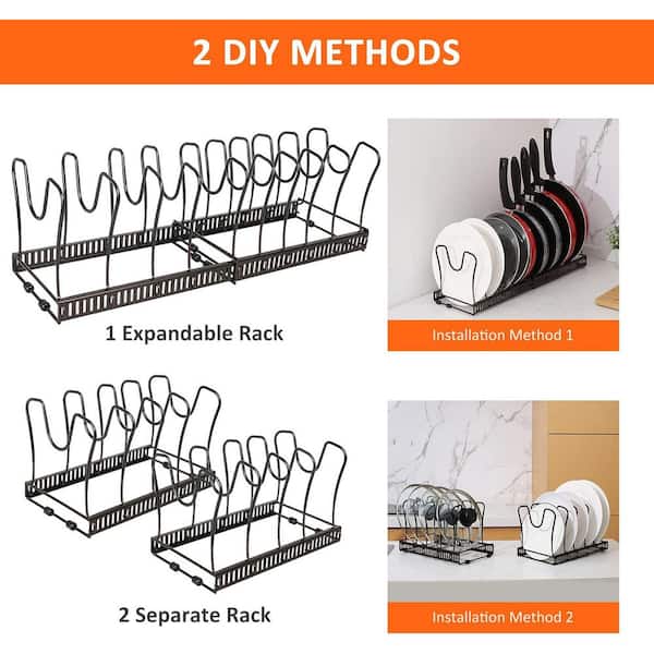 Iron Standing Expandable Pan Organizer for Cabinet Pot Rack with 10 Adjustable Compartment for Kitchen Cabinet, Bronze