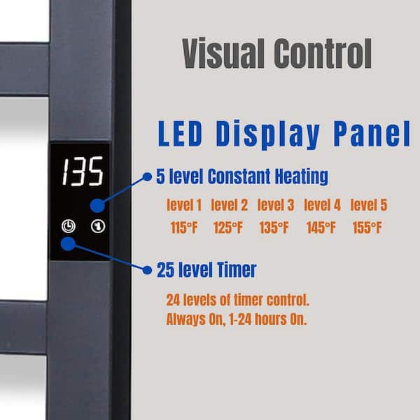 Super Thin 4 Bar Towel Warmer Hardwired Plug-in Electric Bath Accessory with Timer Matte Black Finish
