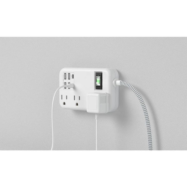 White 4-Outlets Power Strip Surge Protector with 15 ft. Extension Cord with 6 USB Charging Station Wall Mount