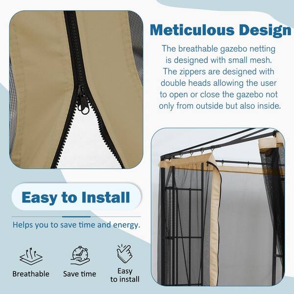 12 ft. x 12 ft. Gazebo Netting Screen Replacement Universal 4-Panel Sidewalls (Only Netting)