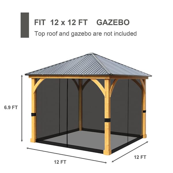 12 ft. x 12 ft. Universal Replacement Mosquito Netting for Patio Gazebos with Zippers (Mosquito Net Only) - Black