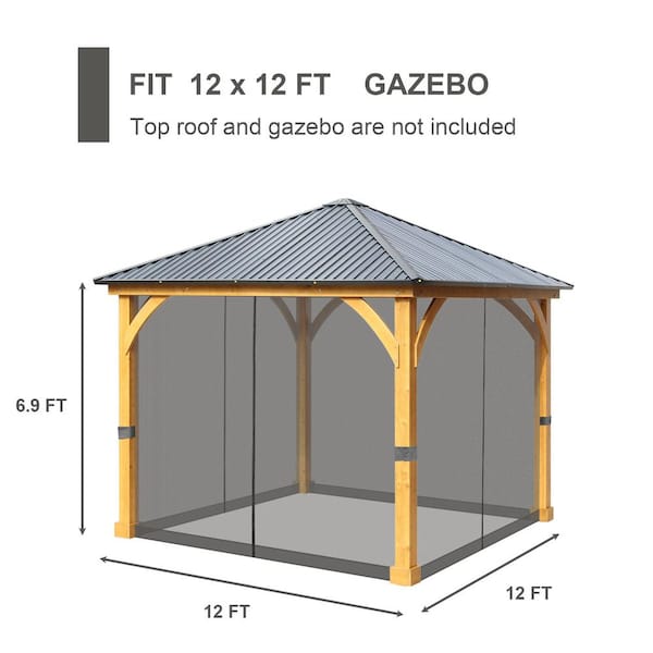 12 ft. x 12 ft. Universal Replacement Mosquito Netting for Patio Gazebos with Zippers (Mosquito Net Only) - Gray