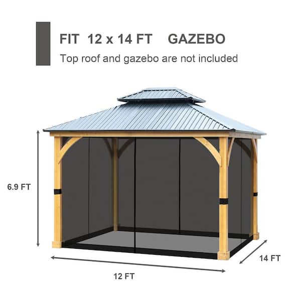 12 ft. x 14 ft. Universal Replacement Mosquito Netting for Patio Gazebos with Zippers (Mosquito Net Only) - Black
