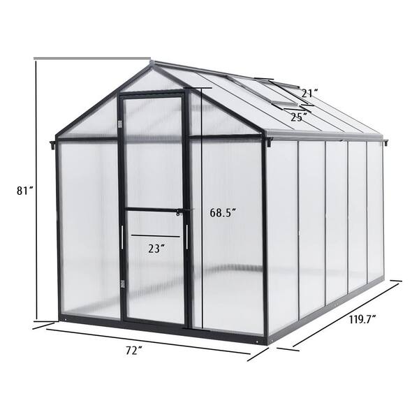 120 in. D x 77 in. W Black Aluminum Frame Walk-in Polycarbonate Greenhouse w/Roof Vent and Rain Gutter