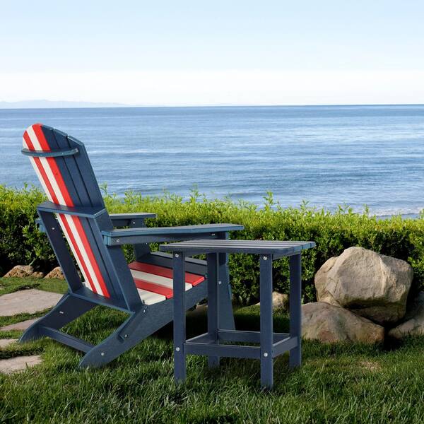 18 in. Solid Navy Blue Outdoor Rectangle Side Table Patio End Table
