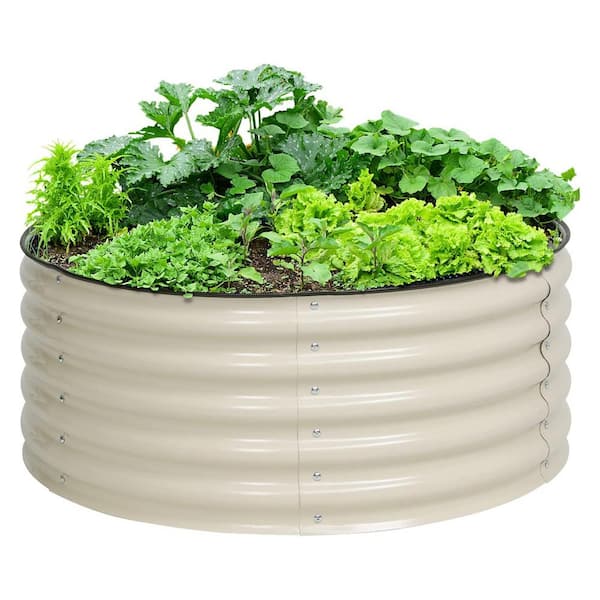 42 in. W x 17 in. H Beige Round Galvanized Metal Raised Garden Bed Ground Modular Planter Box