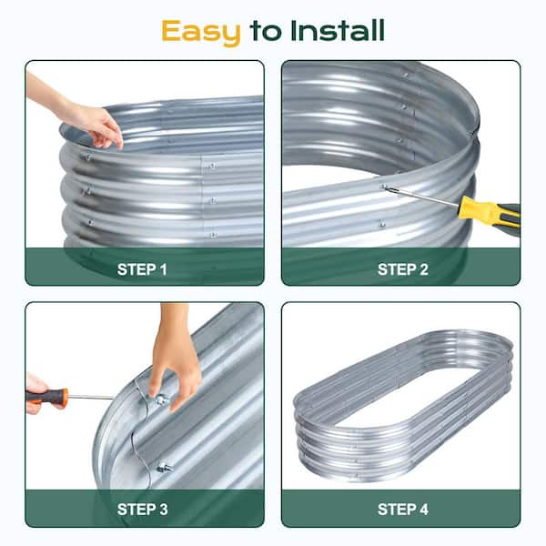 6 ft. x 2 ft. x 1 ft. Tall Silver Modular Metal Raised Garden Bed Kit Oval Planter Box for Vegetable Flower