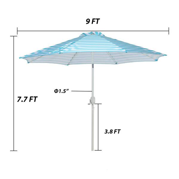 9 ft. Aluminum Market Patio Umbrella with Crank and Tilt in Light Blue and White Striped