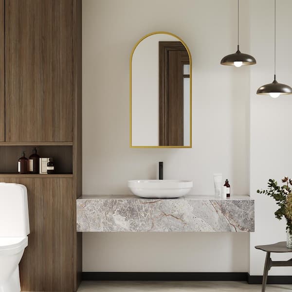 16 in. W x 30 in. H Medium Arched Gold Aluminum Alloy Framed Recessed/Surface Mount Medicine Cabinet with Mirror
