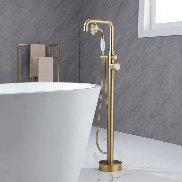 2-Handle Freestanding Tub Faucet with Hand Shower in Brushed Gold