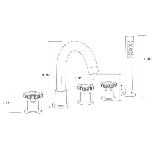 3-Handle Tub-Mount Roman Tub Faucet with Hand Shower in Maate Black