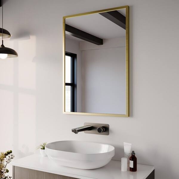 Modern 20 in. W x 28 in. H Rectangular Framed Wall Bathroom Vanity Mirror in Brushed Gold
