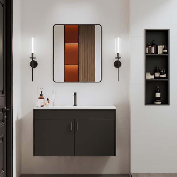 Modern 20 in. W x 30 in. H Rectangular Framed Wall Bathroom Vanity Mirror in Matte Black