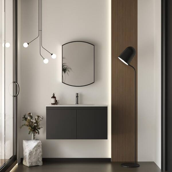 Modern 22 in. W x 31 in. H Arched Black Framed Aluminum Recessed/Surface Mount Medicine Cabinet with Mirror