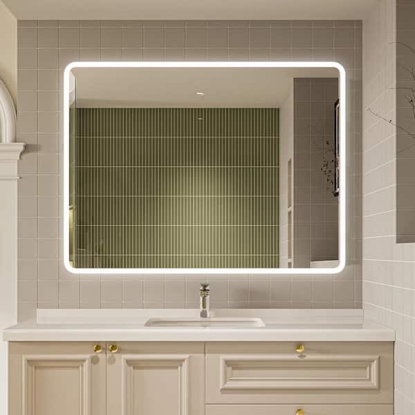 Modern 36 in. W x 28 in. H Large Rectangular Frameless Anti-Fog LED Light Wall Bathroom Vanity Mirror in Silver