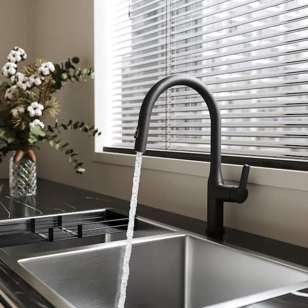 Single Handle Pull-Down 16.53 H Kitchen Faucet with 360° Spout Swivel Dual-Function Sprayer in Matte Black