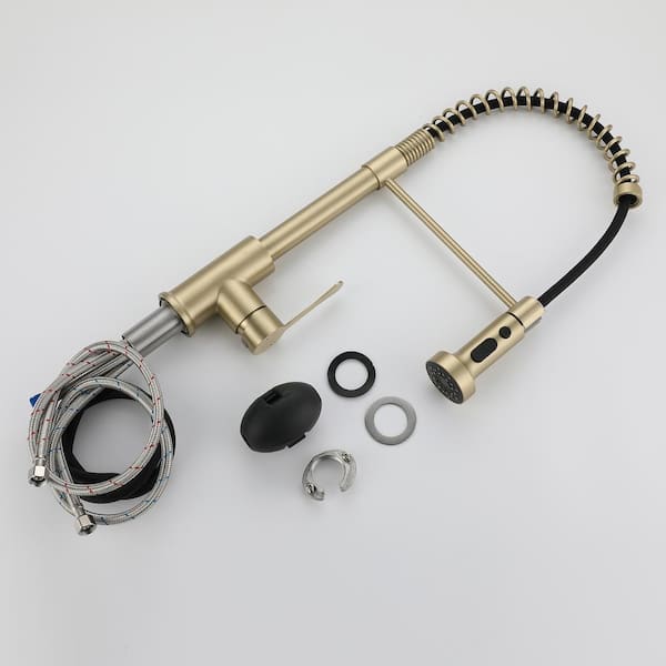 Single-Handle Pull-Down Sprayer Kitchen Faucet with Spring Design in Brushed Gold