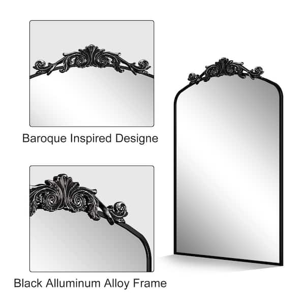 20 in. W x 32 in. H Arch Aluminum Alloy Framed French Cleat Mounted Baroque Wall Decor Bathroom Vanity Mirror in Black