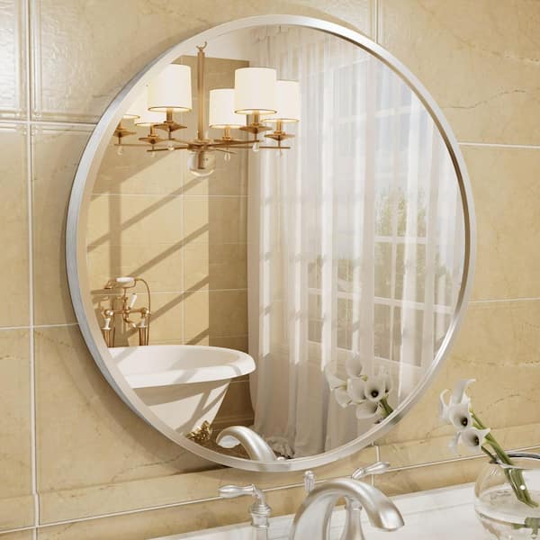 24 in. W x 24 in. H Round Aluminum Alloy Framed French Cleat Mounted Wall Decor Bathroom Vanity Mirror in Matte Silver