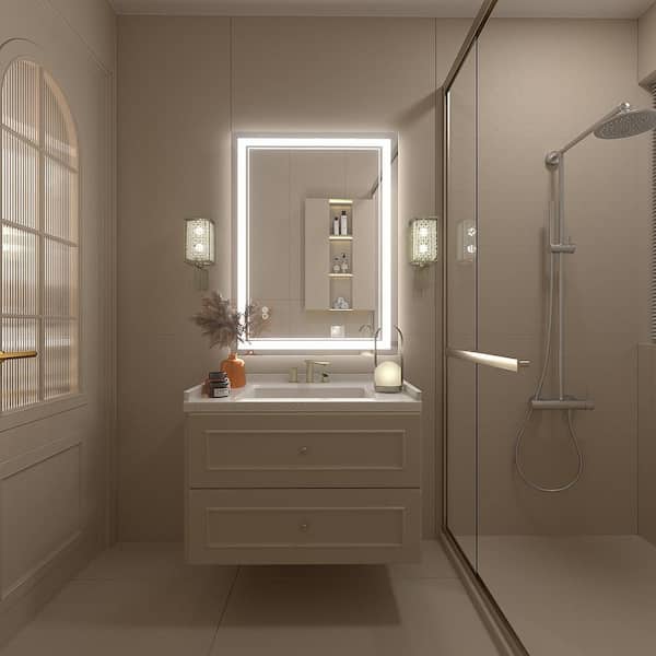 24 in. W x 32 in. H Rectangular Frameless 192 LEDs/m Front Lighted Anti-Fog Tempered Glass Wall Bathroom Vanity Mirror