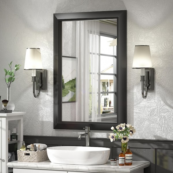 24 in. W x 36 in. H Rectangular Aluminum Alloy Framed and Tempered Glass Wall Bathroom Vanity Mirror in Matte Black