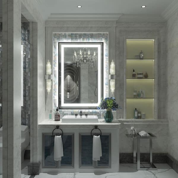 24 in. W x 36 in. H Rectangular Framed Front and Back LED Lighted Anti-Fog Wall Bathroom Vanity Mirror in Tempered Glass