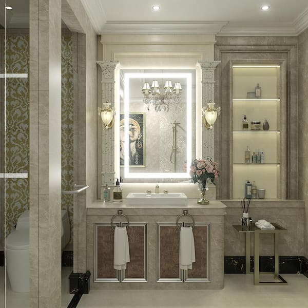 24 in. W x 36 in. H Rectangular Frameless Front & Back LED Lighted Anti-Fog Tempered Glass Wall Bathroom Vanity Mirror