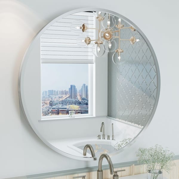 30 in. W x 30 in. H Round Aluminum Alloy Framed French Cleat Mounted Wall Decor Bathroom Vanity Mirror in Matte Silver