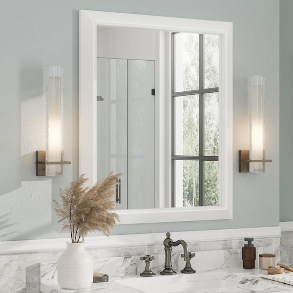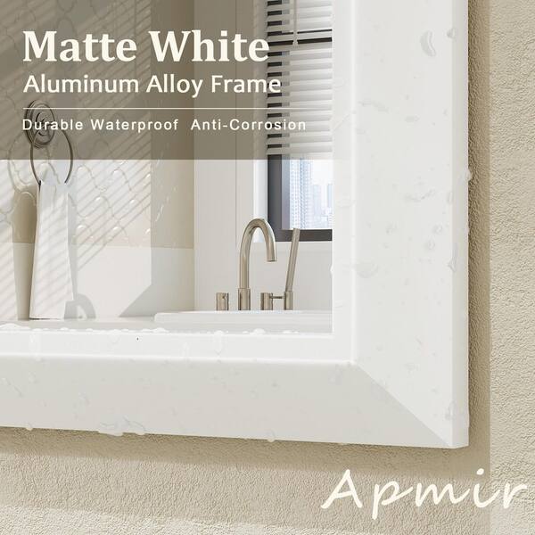30 in. W x 36 in. H Rectangular Aluminum Alloy Framed and Tempered Glass Wall Bathroom Vanity Mirror in Matte White