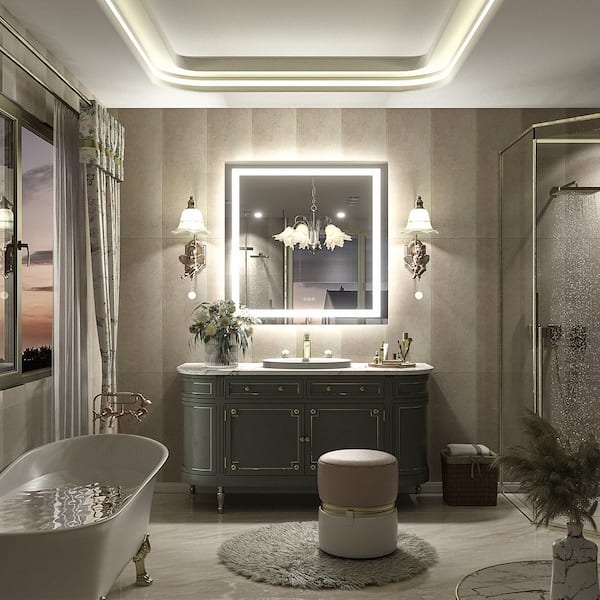 32 in. W x 32 in. H Square Frameless Front and Back LED Lighted Anti-Fog Tempered Glass Wall Bathroom Vanity Mirror