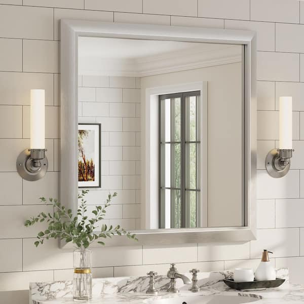 36 in. W x 36 in. H Square Aluminum Alloy Framed and Tempered Glass Wall Bathroom Vanity Mirror in Brushed Silver