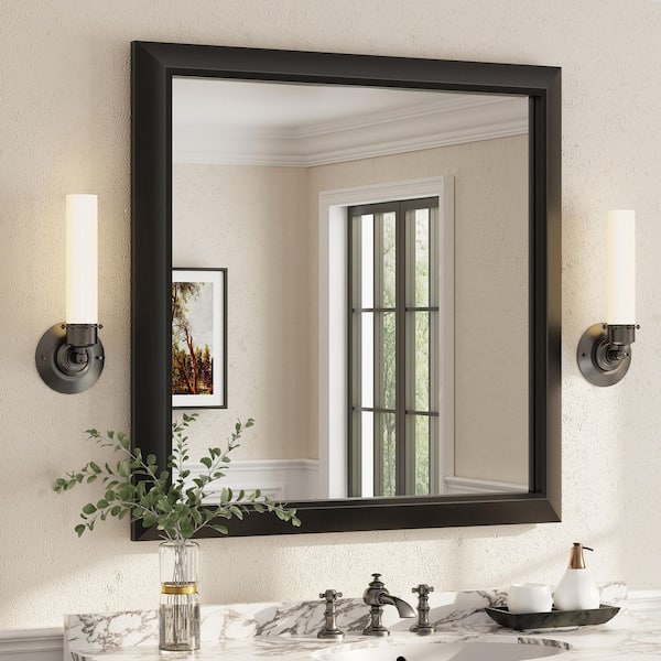 36 in. W x 36 in. H Square Aluminum Alloy Framed and Tempered Glass Wall Bathroom Vanity Mirror in Matte Black