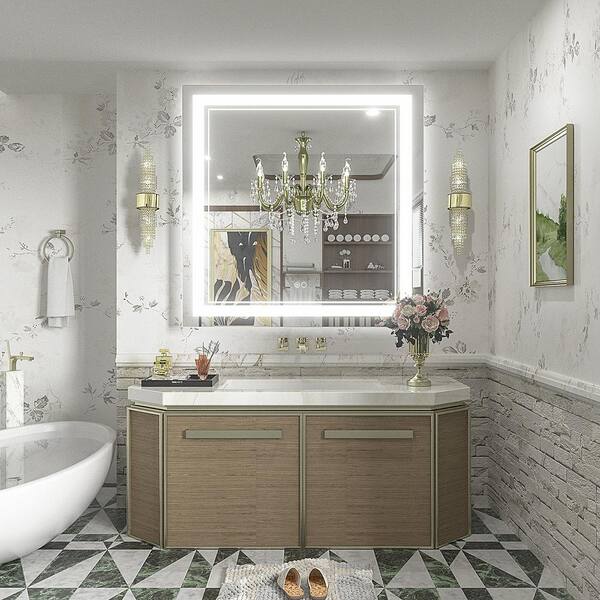 36 in. W x 36 in. H Square Frameless 192 LEDs/m Front Lighted Anti-Fog Tempered Glass Wall Bathroom Vanity Mirror