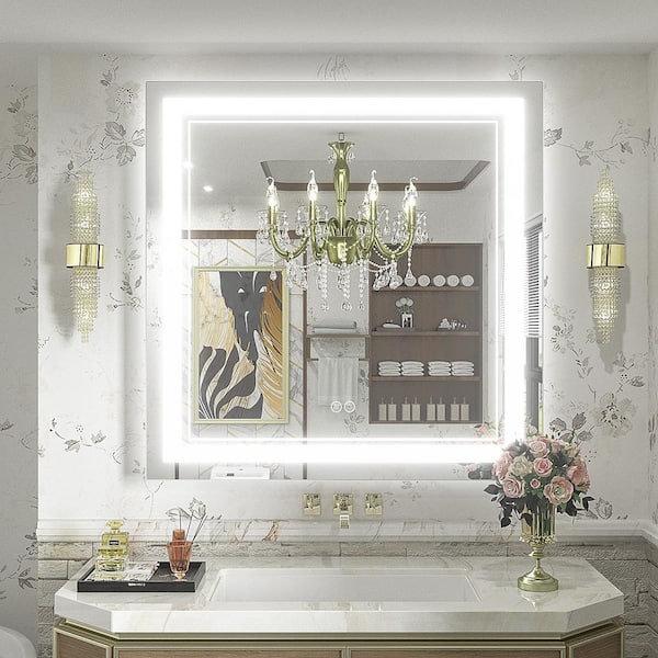 38 in. W x 38 in. H Square Frameless 192 LEDs/m Front Lighted Anti-Fog Tempered Glass Wall Bathroom Vanity Mirror
